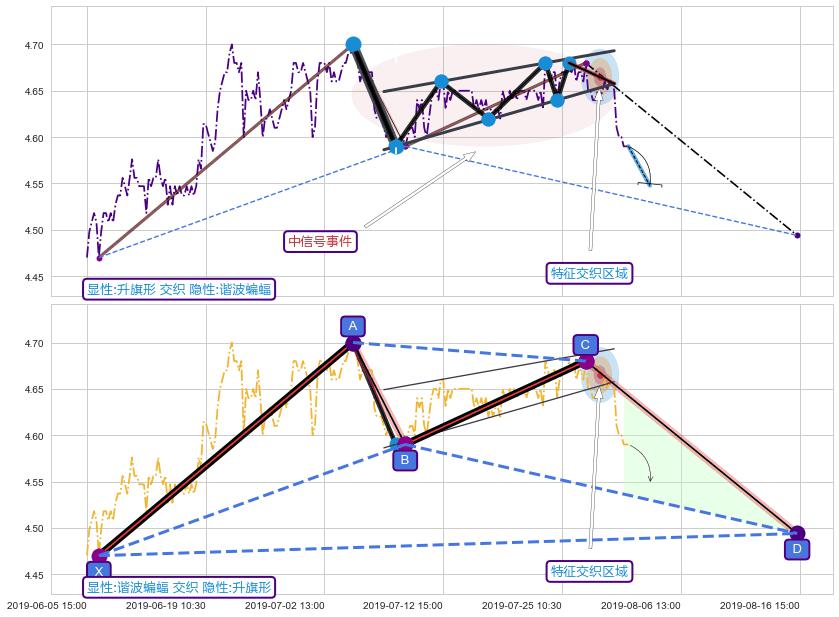 ➢ 升旗形属【中级别信号事件】谐波蝙蝠属【长级别信号事件】中长周期组合信号事件,中长事件长度比49.55%