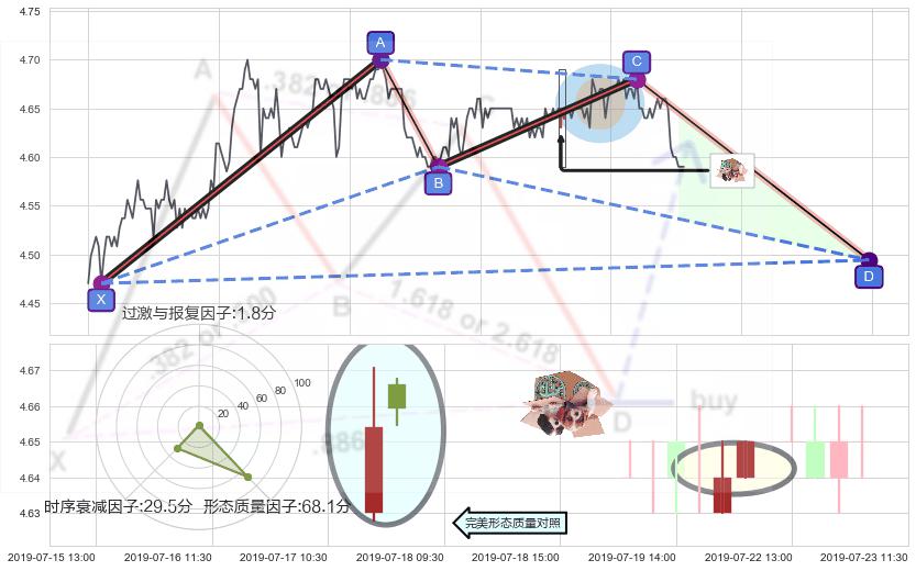 ➢ 🕰 价格走势在2019-07-22 09:30:00至2019-07-22 10:30:00期间形成顶部尽头线(下山虎),残存影响值:-1.55