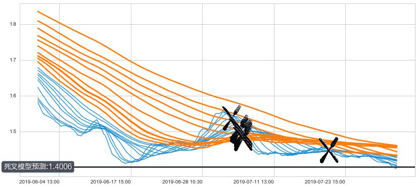 ➣ 80小时均线于(07-05 15:00: 1.4862)形成【死叉】基于【死叉历史模型】预测死叉后最低波谷价格: 1.4107, 死叉后最低价格1.3900,已经下跌超出预测最低波谷价格, 预期反弹