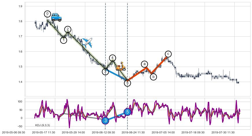 从2019-06-17 13:00至2019-06-26 10:30,共包含41个小时,阶段股价上涨3.37%,阶段股价变动位移路程比: 1 : 5