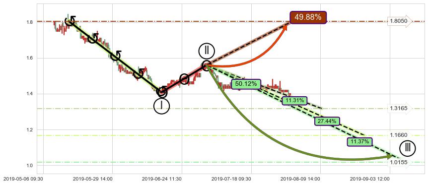 ➢ 循环浪继续向下【最低】位置(09-09:13, 1.0155),匹配聚类样本比例22.68%, 可能性概率11.37%