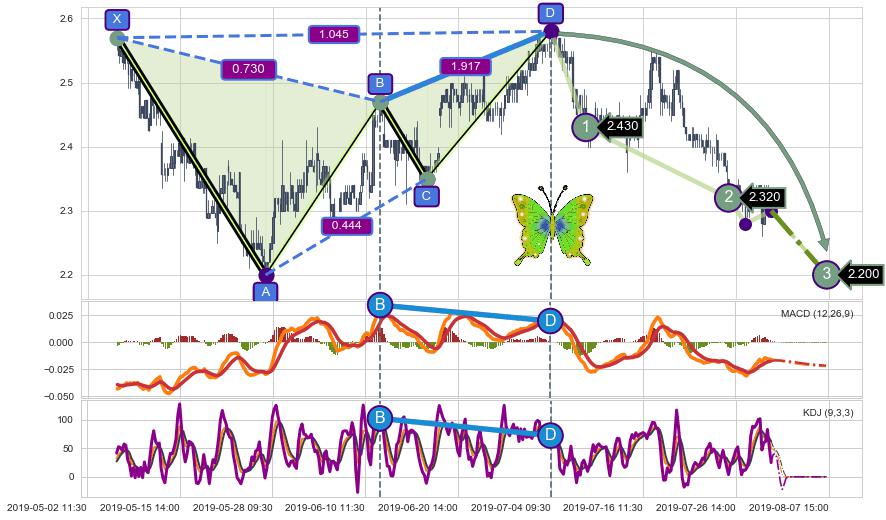 ➣ 已完成【蝴蝶】形态起点X: 05-07:09, 终点D: 07-04:09, 共235交易小时