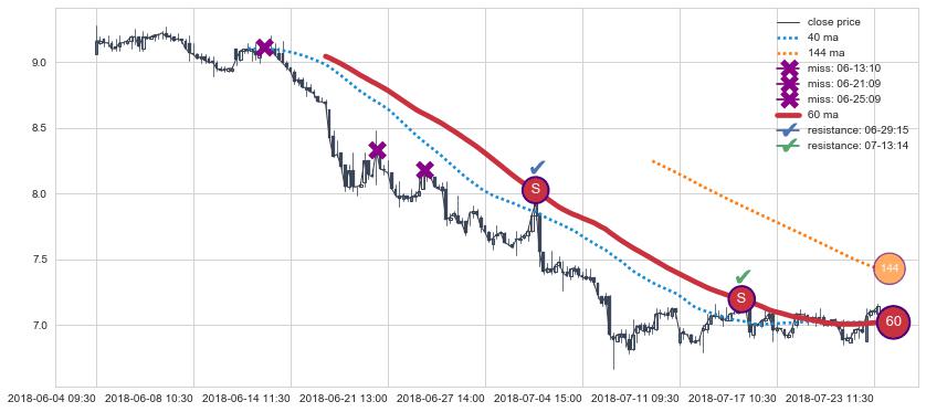 📝 多条均线形成死叉后走势最低价格达到: 7.27