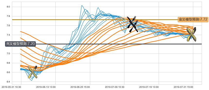 ➣ 60小时均线于(07-31 11:30: 7.39)形成【金叉】基于【金叉历史模型】预测金叉后最高波峰价格: 7.78, 金叉后最高价格7.44,尚未达到预测最高波峰价格, 预期继续上涨