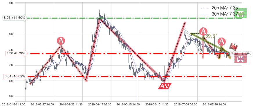 ♞ 20小时均线:7.35,30小时均线:7.37→ 快线<慢线