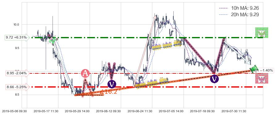 ♘ 支撑价格位8.95,可信任强度54.89%,距离最后交易2019-07-31 15:00形成的收盘价格9.14相差 -2.04%