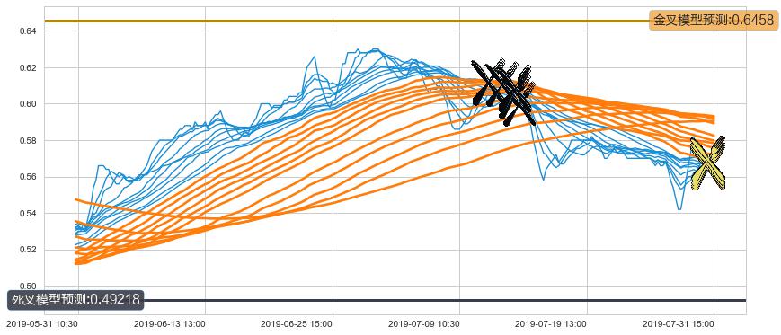 ➣ 45小时均线于(07-31 11:30: 0.5669)形成【金叉】基于【金叉历史模型】预测金叉后最高波峰价格: 0.6619, 金叉后最高价格0.5700,尚未达到预测最高波峰价格, 预期继续上涨