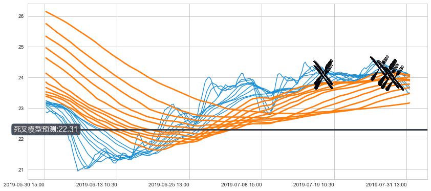 ➣ 70小时均线于(07-29 10:30: 24.15)形成【死叉】基于【死叉历史模型】预测死叉后最低波谷价格: 22.00, 死叉后最低价格23.45,尚未达到预测最低波谷价格, 预期继续下跌