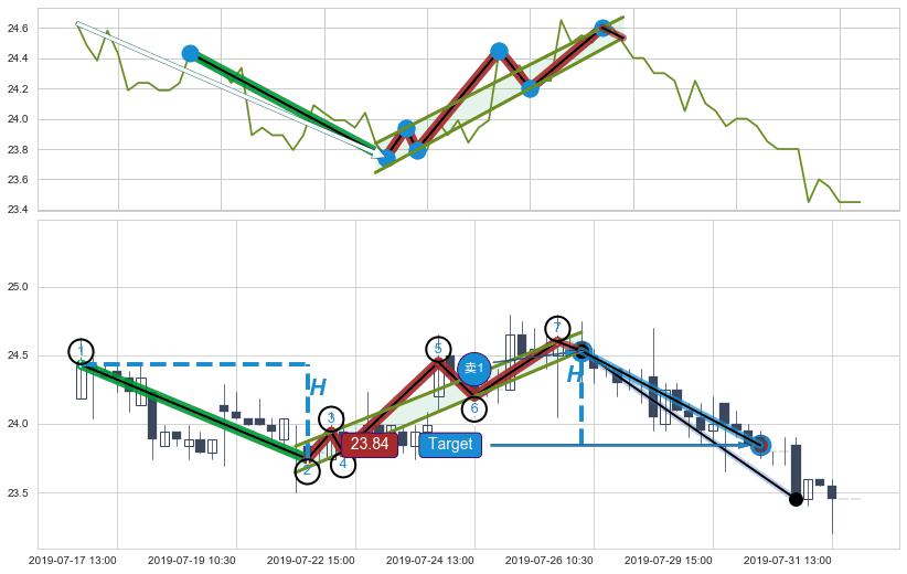 ➢ 【已达成】最小【整理】第一目标价格→(07-30:13: 23.84 ), 后续继续【整理】下跌动力微弱,下跌较小
