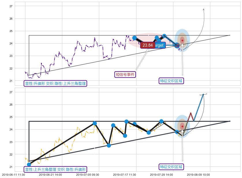 ➢ 升旗形属【短级别信号事件】上升三角整理属【长级别信号事件】长短周期组合信号事件, 短长事件长度比20.57%