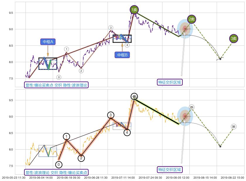 ➣ 缠论买卖点:猜想2卖持续蓄力下跌至3卖 → 下跌 → 风险信号 → 小趋势跟踪