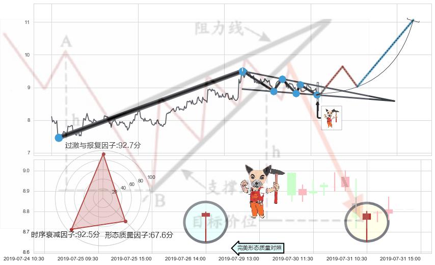 ➢ 🕰 价格走势在2019-07-31 10:30:00至2019-07-31 10:30:00期间形成锤头线(锤子线),残存影响值:7.88
