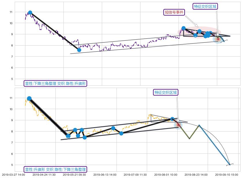 ➢ 下降三角整理属【短级别信号事件】缠论买卖点属【长级别信号事件】长短周期组合信号事件, 短长事件长度比29.39%