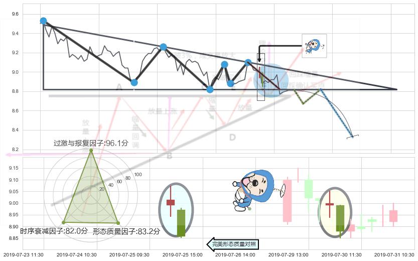➣ 2019-06-19 09:30-2019-07-18 09:30上升趋势存在反转[风险],其原上升趋势的支撑位(9.17)已破位[强阻力信号],原上升趋势角度: 31.5˚