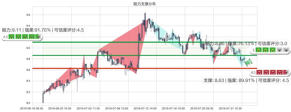 ♘ 阻力价格位9.11,可信任强度91.70%,距离最后交易2019-07-31 15:00形成的收盘价格8.81相差 +3.37%