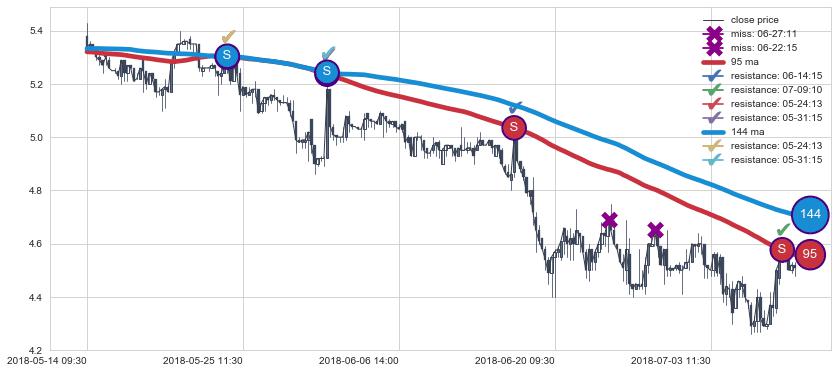 05-23 10:30至07-09 15:00 慢线与快线呈空头排列, 慢线与快线接触少,无缠绕