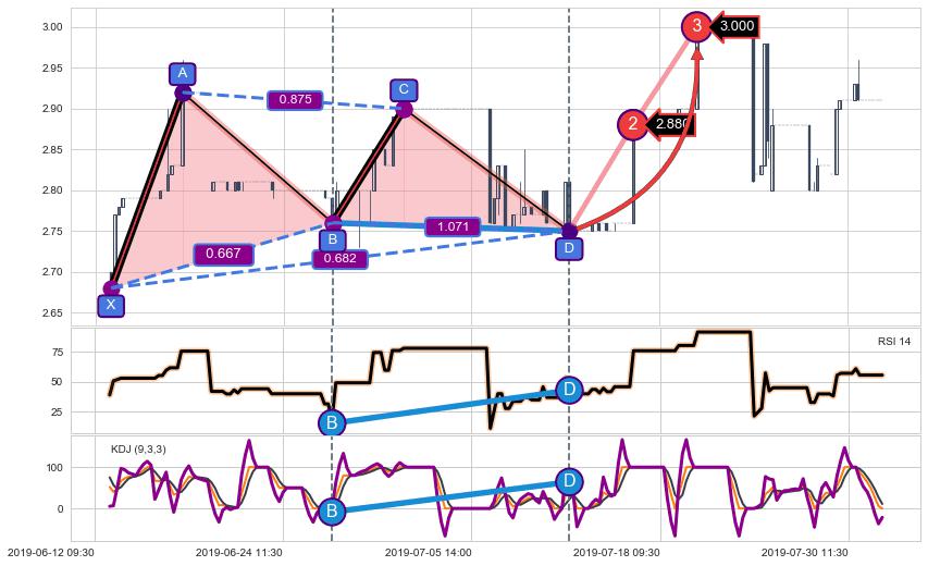 ➢ 谐波价格D点比B点低 ⤵,【KDJ】指标D点比B点高 ⤴️