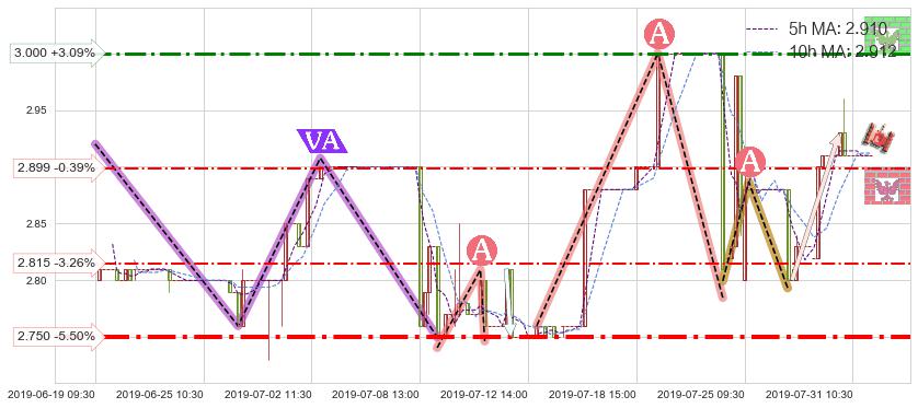 ♘ 阻力价格位3.000,可信任强度55.01%,距离最后交易2019-07-31 15:00形成的收盘价格2.910相差 +3.09%