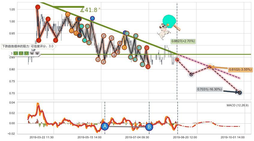 ➣ 预测:2019-09-02 15:00,【试探阻力】稳定目前下跌趋势的前提下,预测价格:0.8102