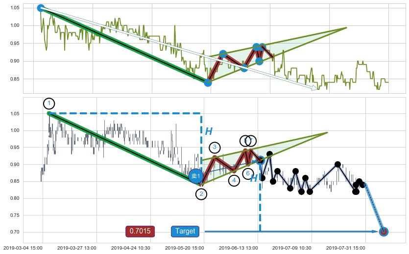 ➢ 最小中继整理跌幅→𝐇: 0.210000 (𝐇楔型旗杆的长度:楔型起点→顶点)