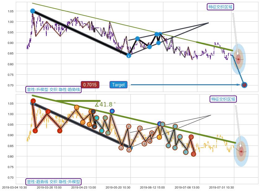 ➢ 预测:2019-10-01 14:00,【继续下探】稳定目前下跌趋势的前提下,预测价格:0.7031