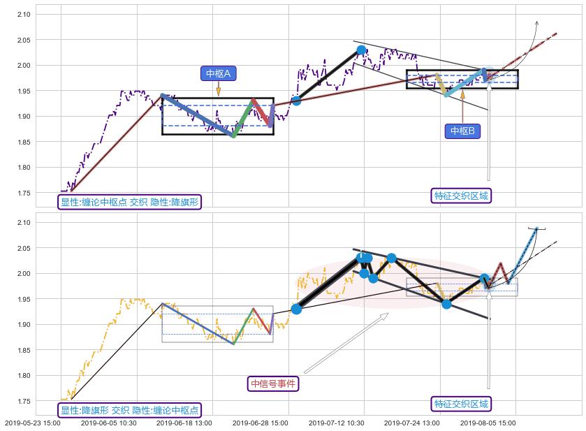 ➣ 缠论中枢点:猜想突破中枢B后持续拉升 → 上涨 → 突破中枢B阻力 → 持续趋势跟踪