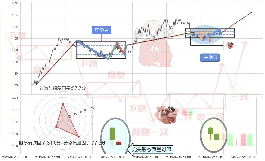 ➢ 【中枢B】:07-24:10-07-31:13,中枢由4笔构成,共33交易小时, ZG=1.9800, ZD=1.9700