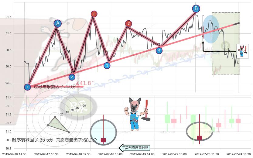 ➢ 2019-06-03 09:30-2019-07-30 15:00上升趋势存在反转[风险],其原上升趋势的支撑位(31.31)已破位[强阻力信号],原上升趋势角度: 41.8˚