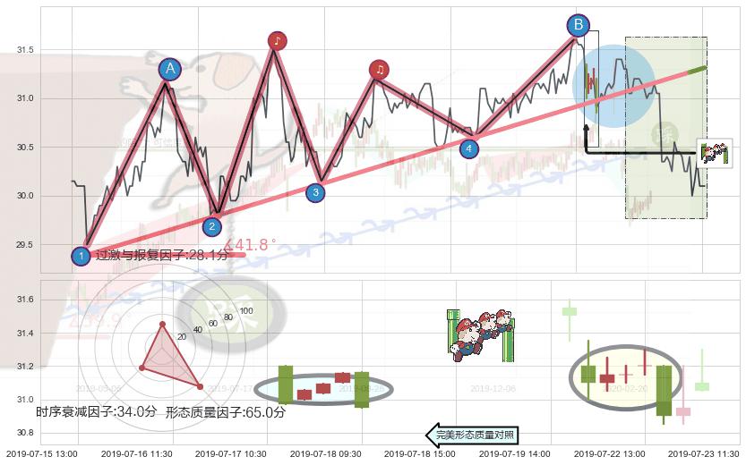➢ 🕰 价格走势在2019-07-22 00:00:00至2019-07-24 00:00:00期间形成两黑夹一红,残存影响值:-3.01