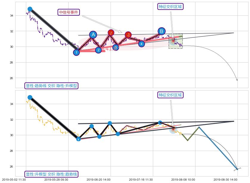 ➢ 趋势线属【中级别信号事件】升楔型属【长级别信号事件】中长周期组合信号事件,中长事件长度比64.24%