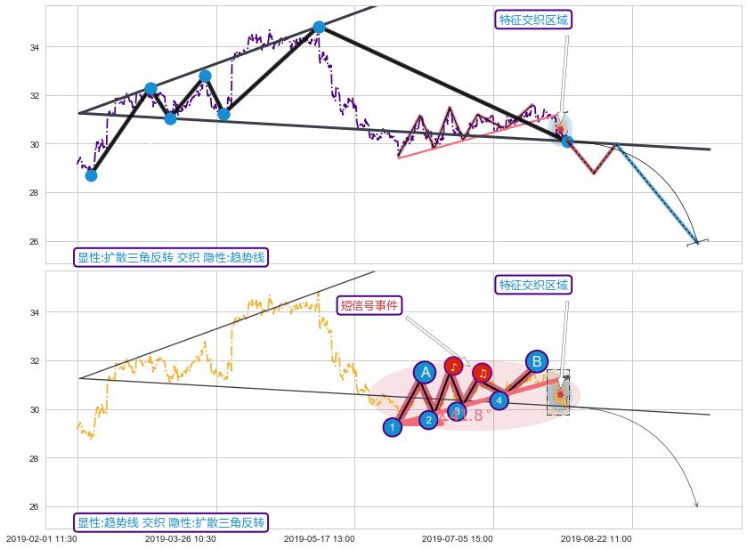 ➢ 趋势线属【短级别信号事件】扩散三角反转属【长级别信号事件】长短周期组合信号事件, 短长事件长度比32.03%
