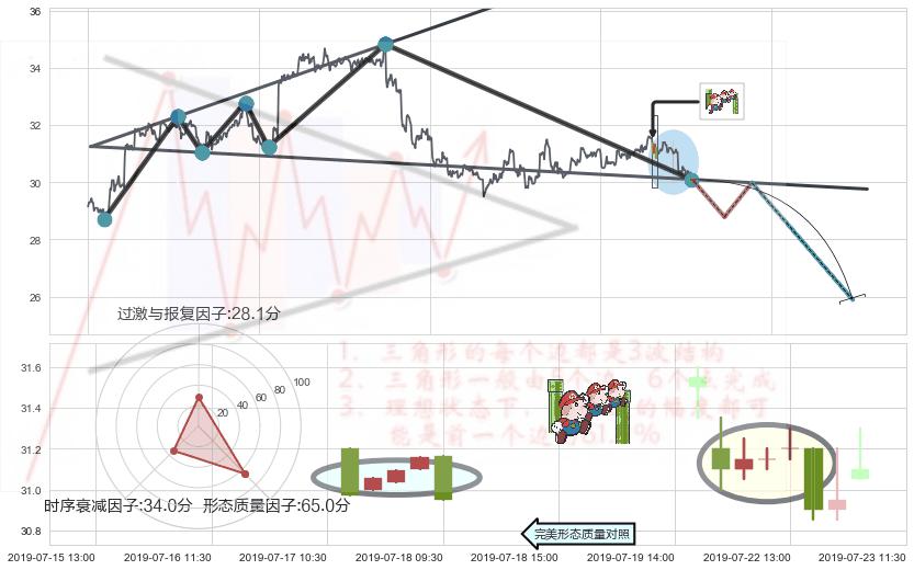 ➣ 2019-06-03 09:30-2019-07-30 15:00上升趋势存在反转[风险],其原上升趋势的支撑位(31.31)已破位[强阻力信号],原上升趋势角度: 41.8˚