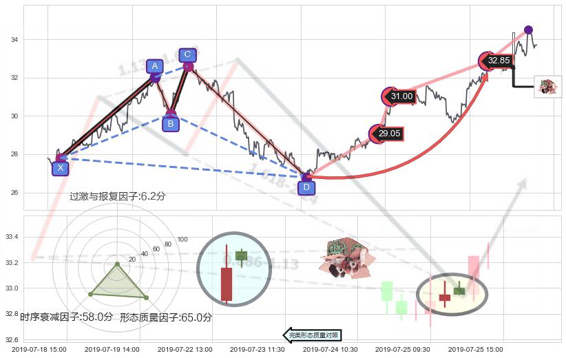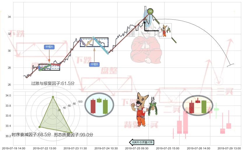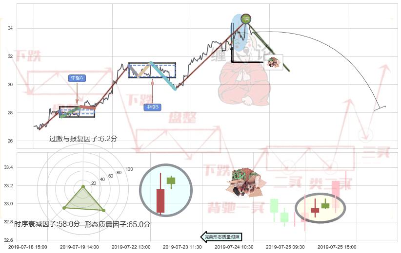 ➢ 🕰 价格走势在2019-07-25 10:30:00至2019-07-25 11:30:00期间形成顶部尽头线(下山虎),残存影响值:-2.34