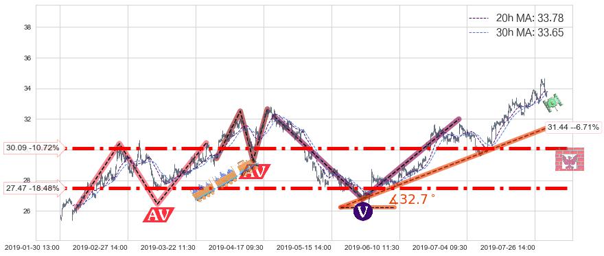 ♘ 支撑价格位30.09,可信任强度90.45%,距离最后交易2019-07-31 15:00形成的收盘价格33.70相差 -10.72%
