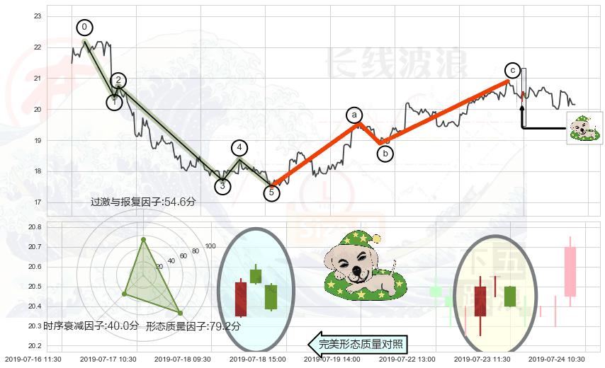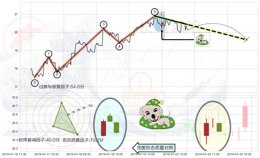 ➢ 🕰 价格走势在2019-07-24 14:00:00至2019-07-24 15:00:00期间形成双针探底,残存影响值:6.65