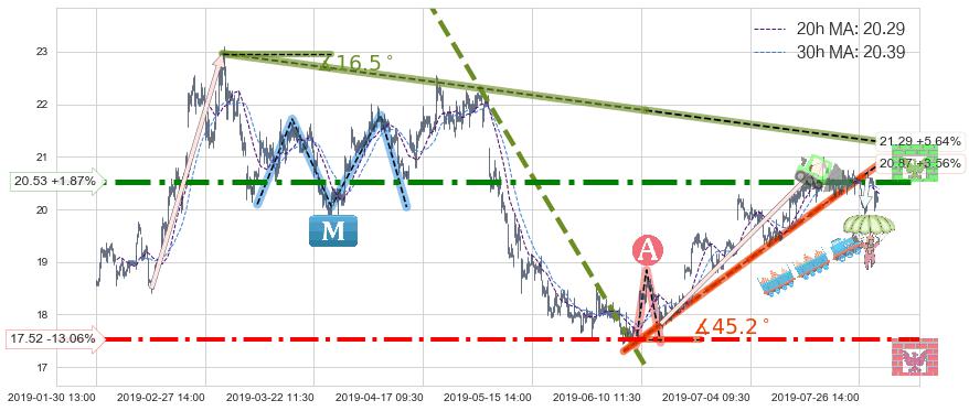 ♘ 阻力价格位20.53,可信任强度88.25%,距离最后交易2019-07-31 15:00形成的收盘价格20.15相差 +1.87%