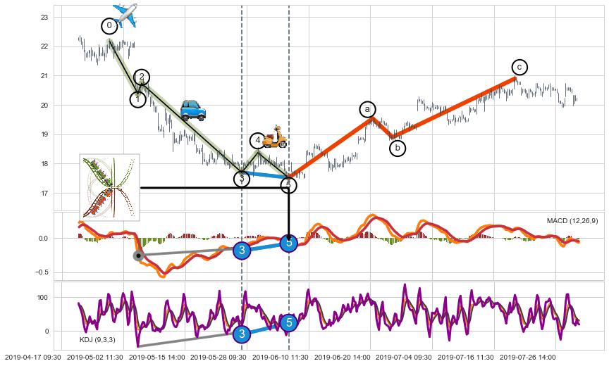 ➣ 波浪理论:猜想达到c点后小反弹终止反转下跌 → 下跌 → 【拐点】临近 → 阶段均值回复结束后继续大周期趋势跟踪