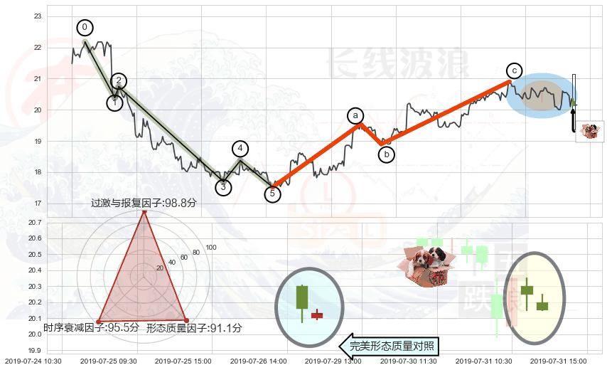 ➢ 🕰 价格走势在2019-07-31 11:30:00至2019-07-31 13:00:00期间形成底部尽头线(上山虎),残存影响值:8.42