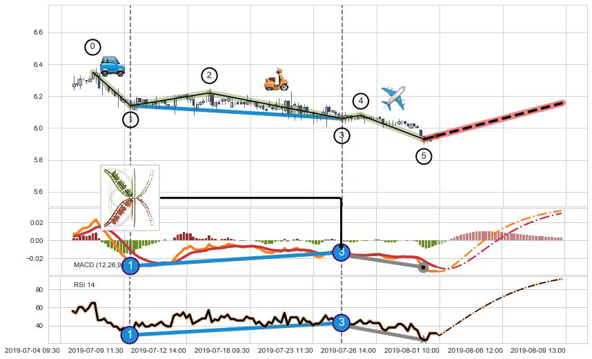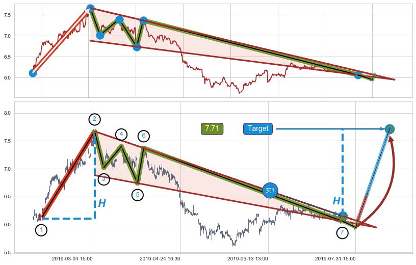 ➣ 降楔型:猜想临近关键阻力位突破点 → 临近拐点上涨 → 机会信号 → 大趋势均值回复