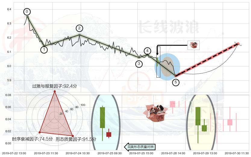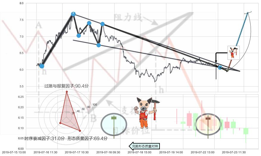 ➢ 🕰 价格走势在2019-07-29 09:30:00至2019-07-29 10:30:00期间形成底部尽头线(上山虎),残存影响值:7.38