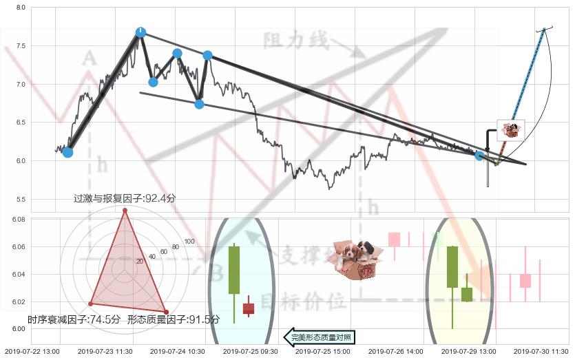 ♘ 阻力价格位6.35,可信任强度50.08%,距离最后交易2019-07-31 15:00形成的收盘价格5.95相差 +6.71%