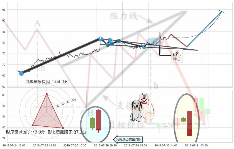 ➢ 🕰 价格走势在2019-07-30 15:00:00至2019-07-31 09:30:00期间形成阳包阴形态,残存影响值:6.49