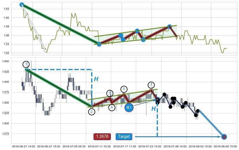 ➣ 最小中继整理跌幅→𝐇: 0.0900000 (𝐇旗杆的长度:旗杆起点→顶点)