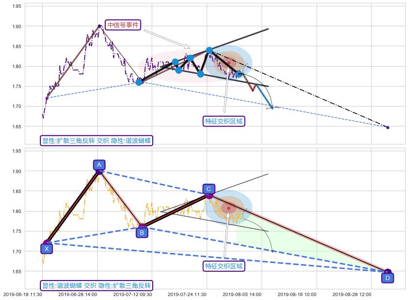 ➢ 扩散三角反转属【中级别信号事件】谐波蝴蝶属【长级别信号事件】中长周期组合信号事件,中长事件长度比53.33%