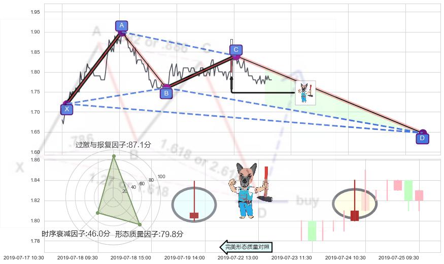 ➣ 未完成【蝴蝶】形态起点X: 06-19:09, 已到达C点: 07-24:14, 预测最终D点: 08-30:15, 共306交易小时