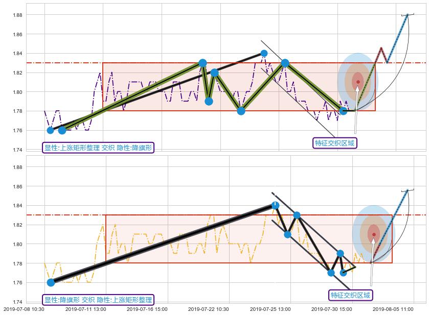 ➣ 上涨矩形整理:猜想临近关键阻力位突破点 → 临近拐点上涨 → 机会信号 → 大趋势均值回复