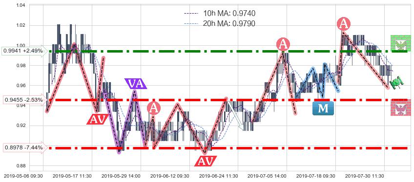 ♘ 阻力价格位0.9941,可信任强度92.88%,距离最后交易2019-07-31 15:00形成的收盘价格0.9700相差 +2.49%