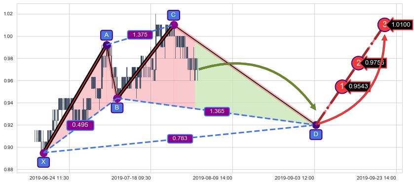 ➣ 未完成【赛福】形态起点X: 06-17:10, 已到达C点: 07-24:14, 预测最终D点: 09-03:14, 共329交易小时