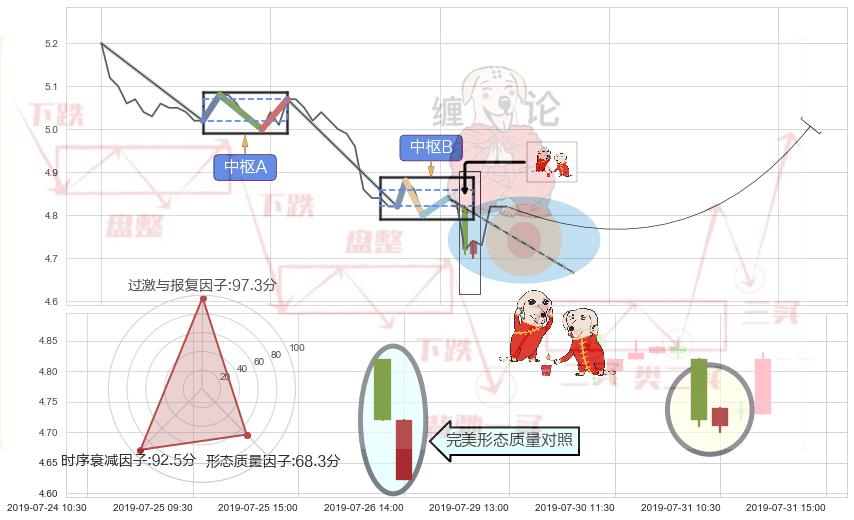 ➢ 【中枢B】:07-29:14-07-30:14,中枢由4笔构成,共7交易小时, ZG=4.84, ZD=4.82