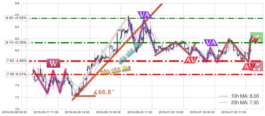 ♘ 阻力价格位8.55,可信任强度55.15%,距离最后交易2019-07-31 15:00形成的收盘价格8.10相差 +5.52%